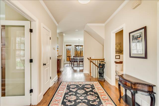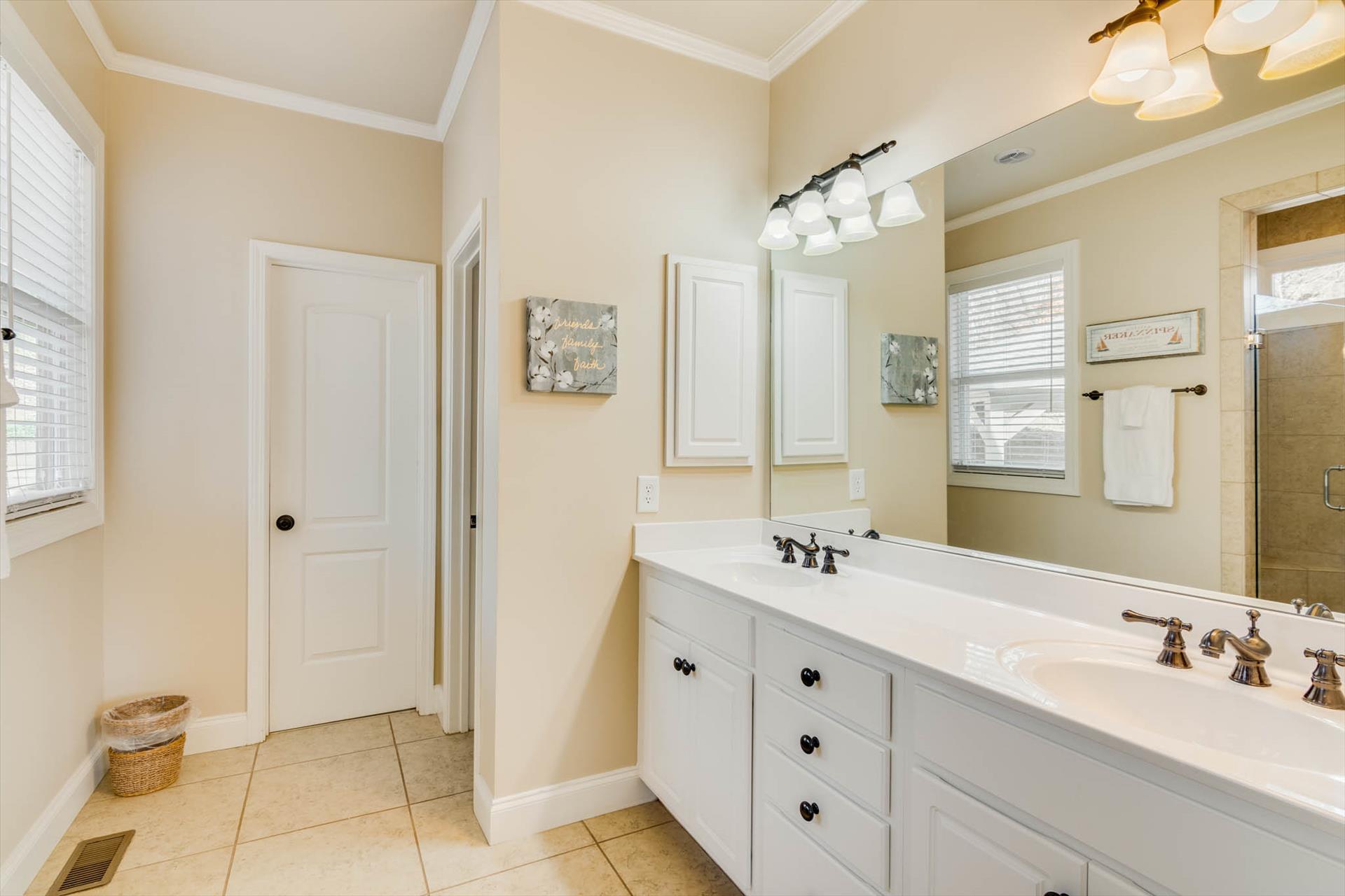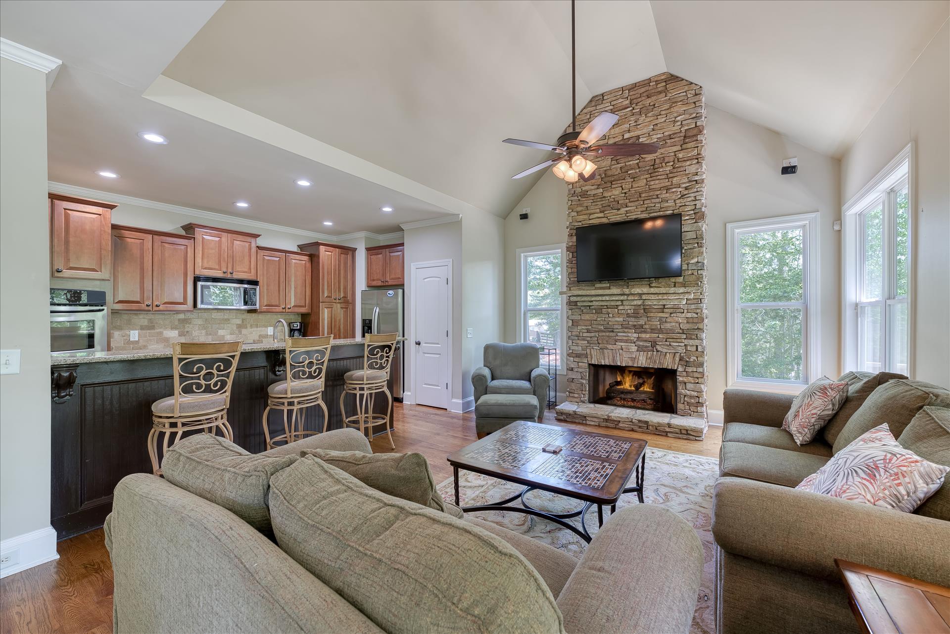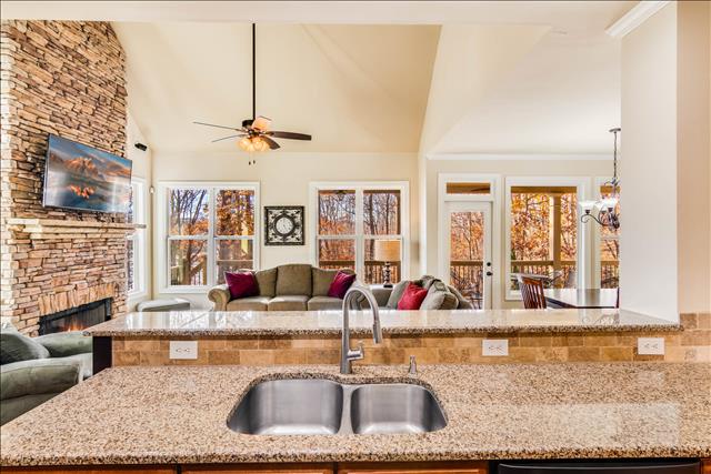 This spacious home would be perfect for a family vacation, family reunion or even a couple of families staying together. There is plenty of room to spread out and enjoy your stay in Gainesville on Lake Lanier. The property slopes to the water for an easy walk to the dock--not totally flat but almost. It is easily manageable on the well groomed path. The house is only a short drive from downtown Gainesville as well as Lake Lanier Islands, the Premium Outlet Mall in Dawsonville and even Dahlonega.