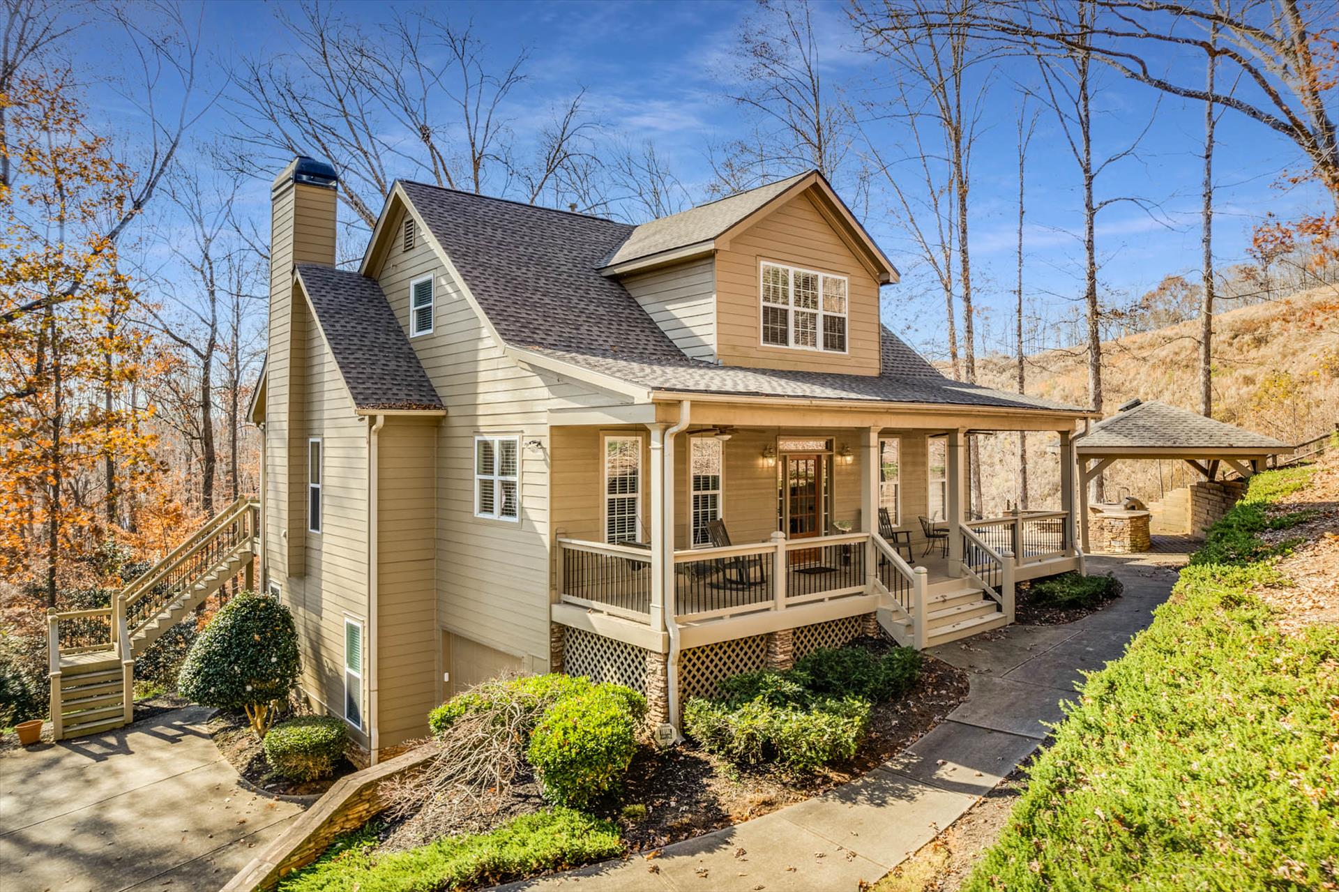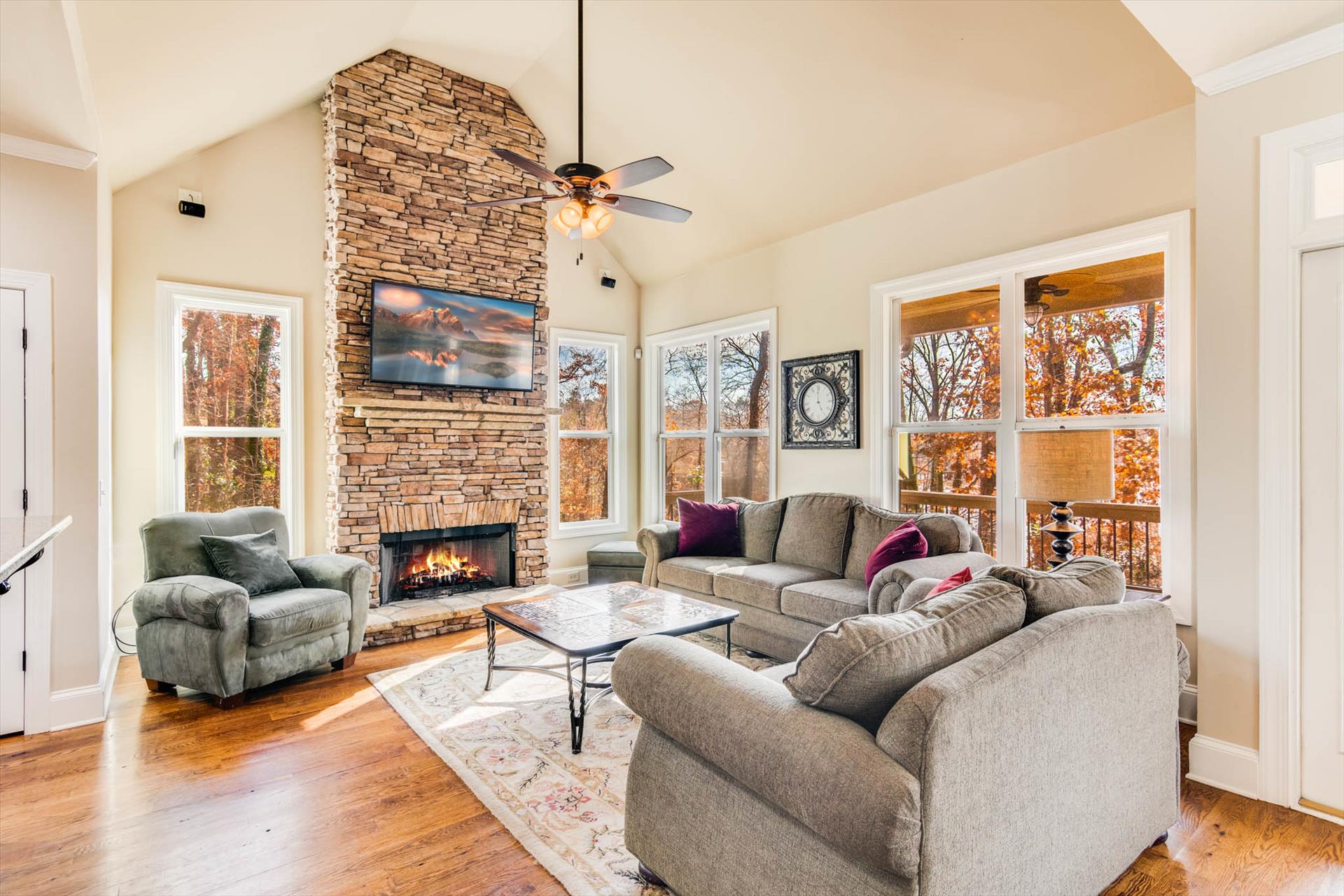 "Happy Ours on Lanier" is a private lake house retreat, conveniently located on Lake Lanier with its own private dock, outdoor kitchen & fire ring. Bring your boat if you have one or just jump in and float or kayak around the cove. During the cooler months, enjoy the scenery of the north Georgia mountains and the