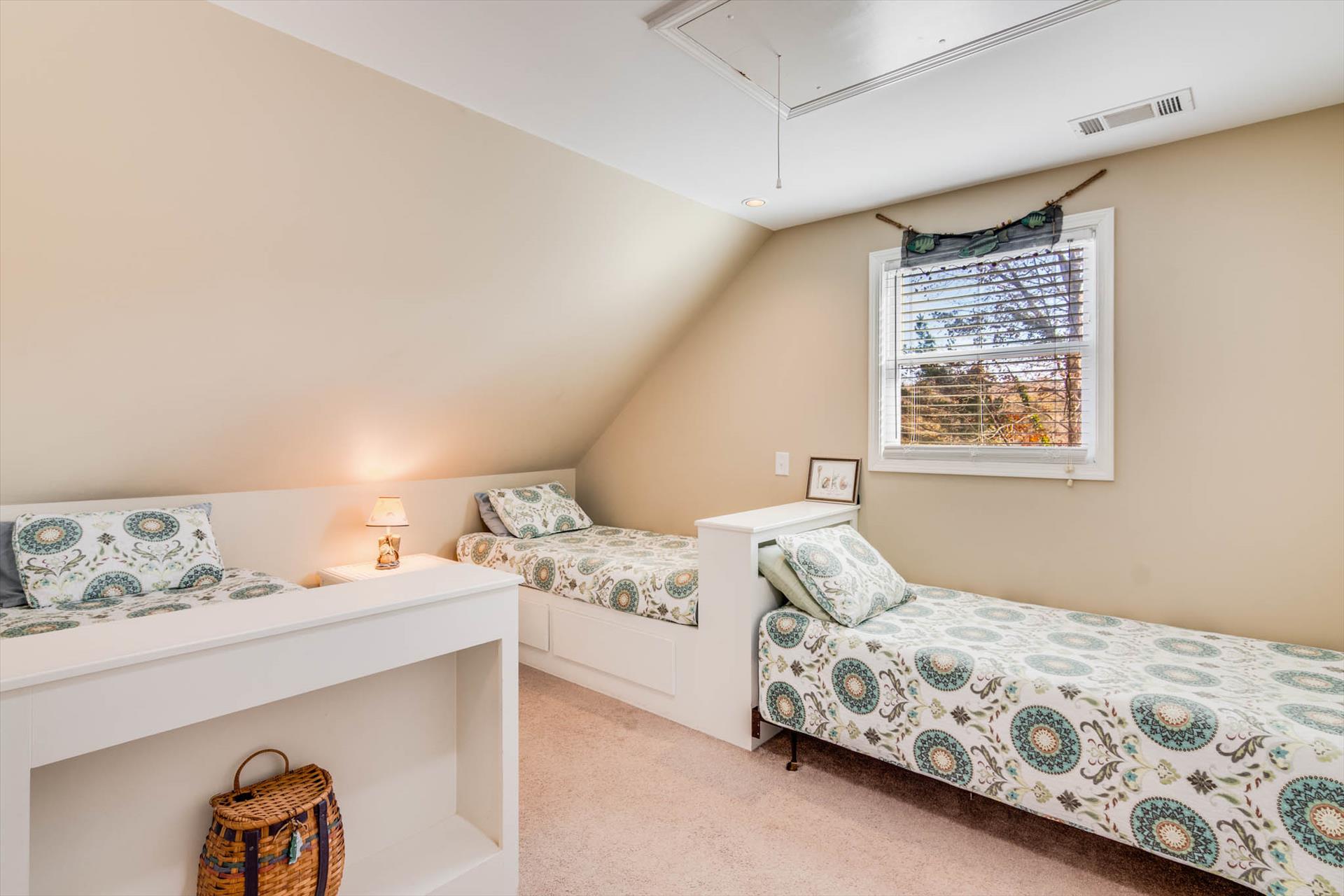 5. Three single beds--not bunks (upstairs bedroom).